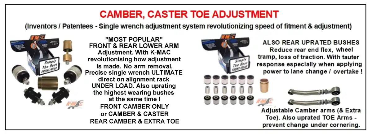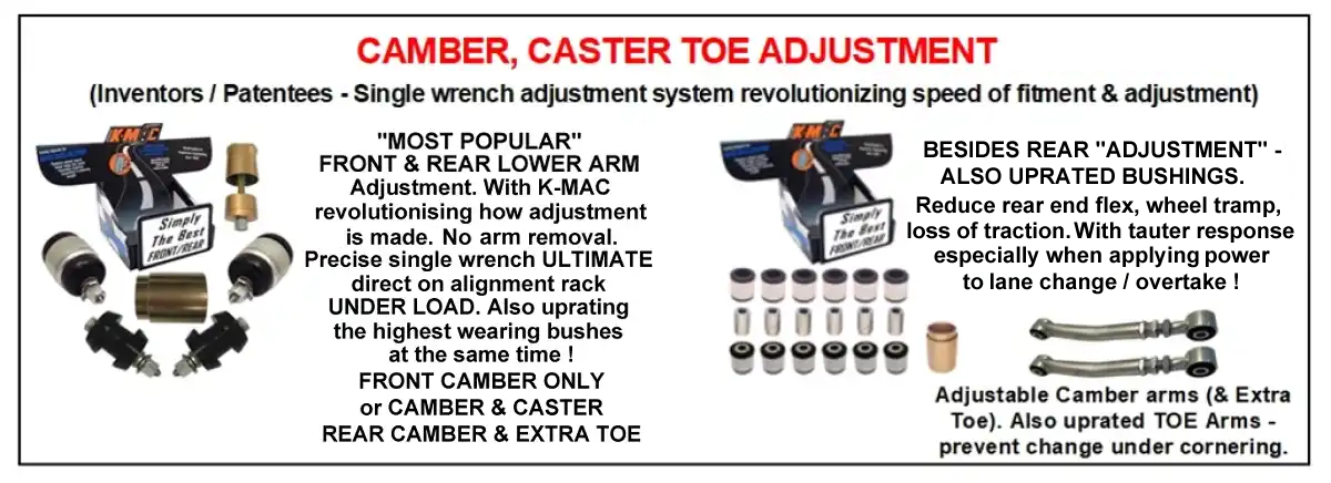 k-mac, wheel alignment, camber kits, camber plates, caster, bushing kits