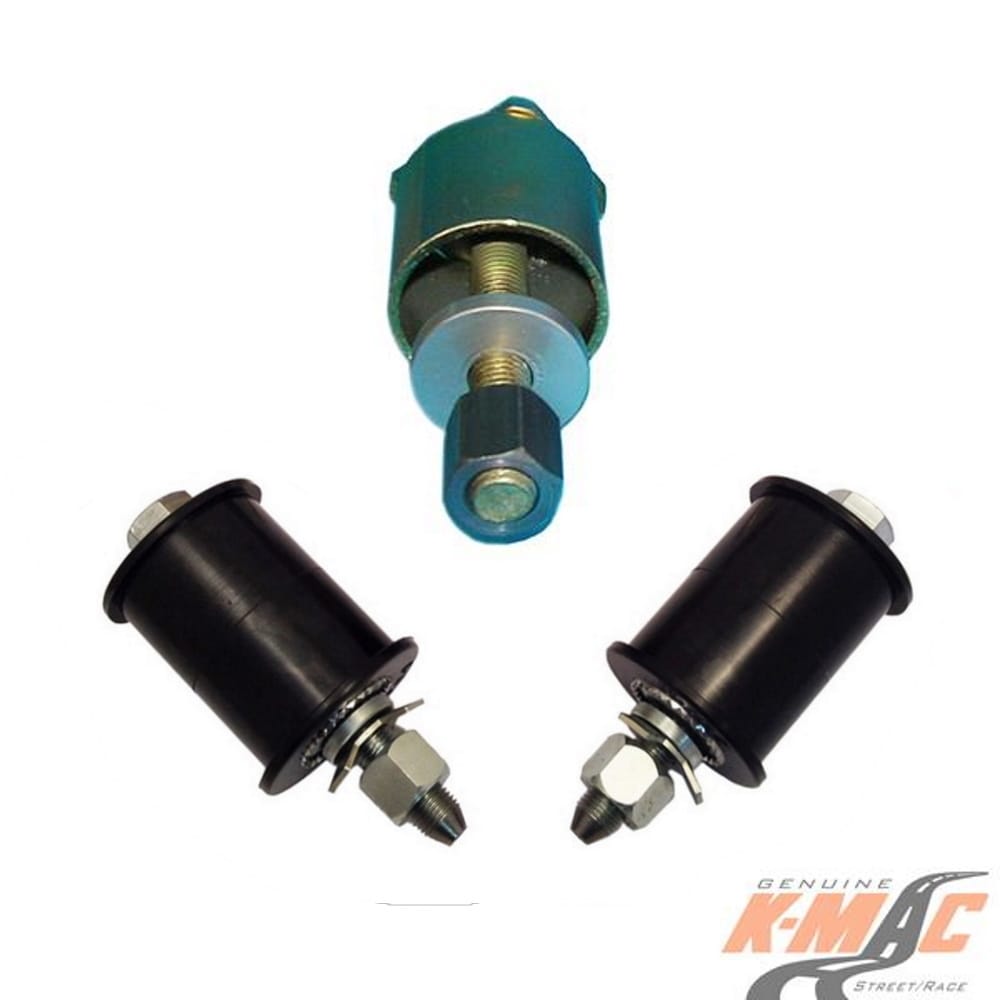 PRODUCT : K-MAC patented design. Revolutionizing the industry – No more need to labor intensively disassemble each time and re-position adjustment settings. Now with K-MAC it’s single wrench adjustable on car accurately (under load) direct on alignment rack. Resolves costly premature edge tire wear and improves traction. Track days being able to increase negative camber and track width to reduce understeer, allowing to go deeper into the corners with improved traction, braking and cornering response. Along with improved ability to hit those corner apex’s every time in the pursuit of pole setting lap times on Race days! Bush extraction and insertion tubes supplied.