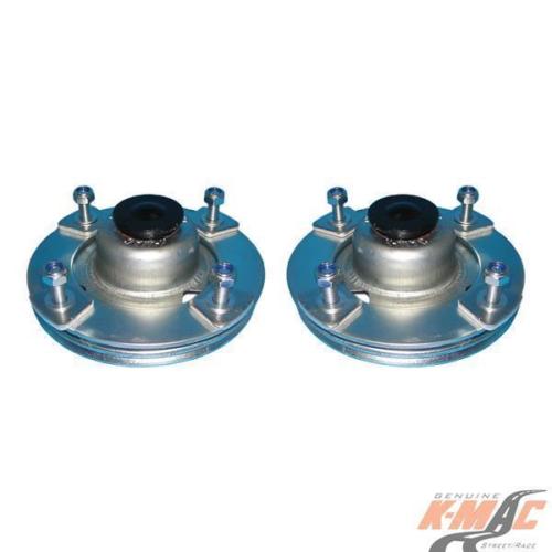 SIMPLY REPLACE THE EXISTING TOP STRUT MOUNTS : Steel with elastomer bushed centers and “captive” ball race thrust bearings for day to day commuter usage. Simply replace the existing top strut mounts (no modifications). Reinforcing the strut towers and with the unique KMAC patented design providing the biggest (and quickest) adjustment range of both Camber and Caster. Another KMAC Patented design feature allows this fast adjustment to be made accurately under load.