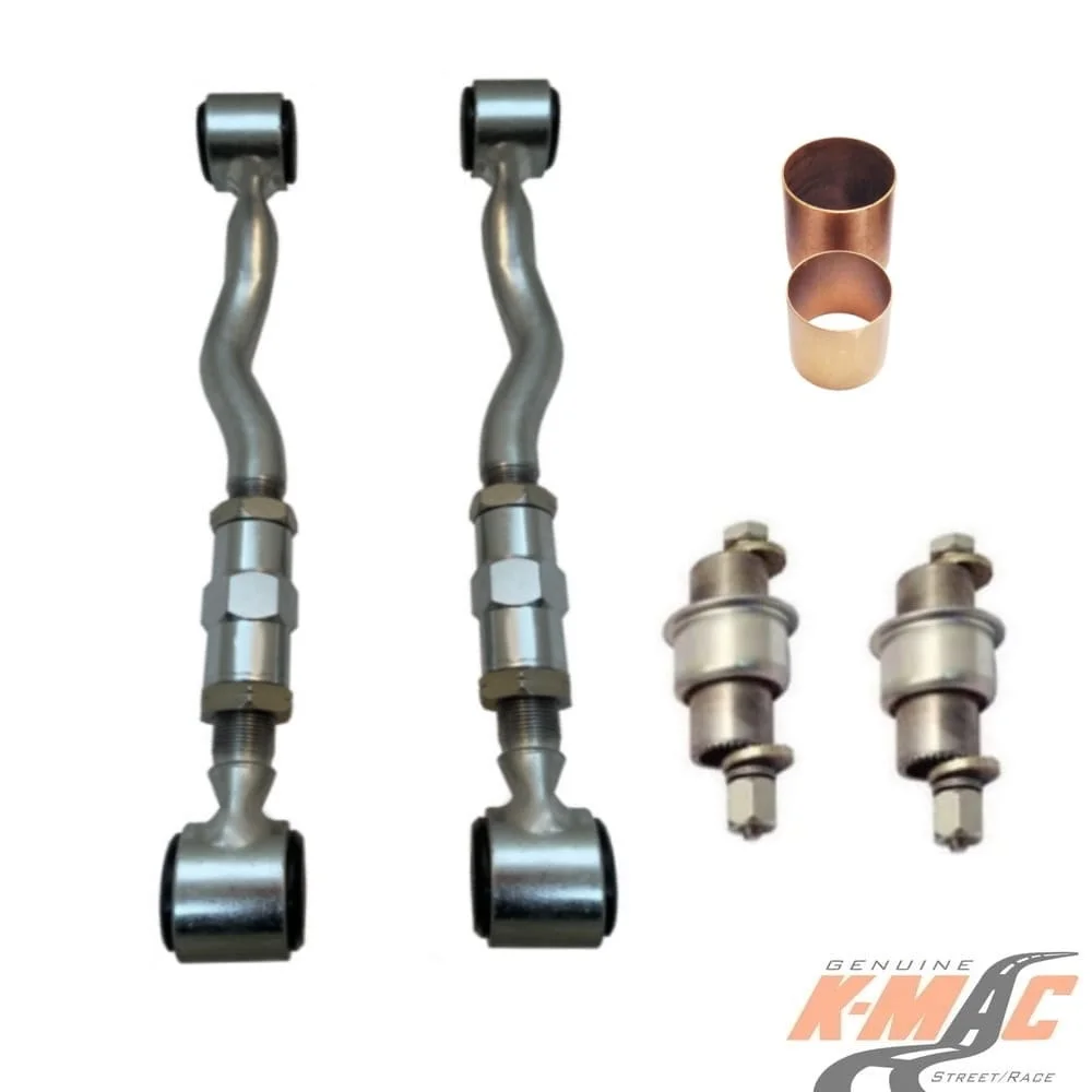 (Otherwise superceded by Lower Arm K-MAC kits – Easier to fit and adjust. Allowing important clearance – top of tire to outer fender and also provides substantial adjustment – Up to 2 degrees extra Positive or Negative).