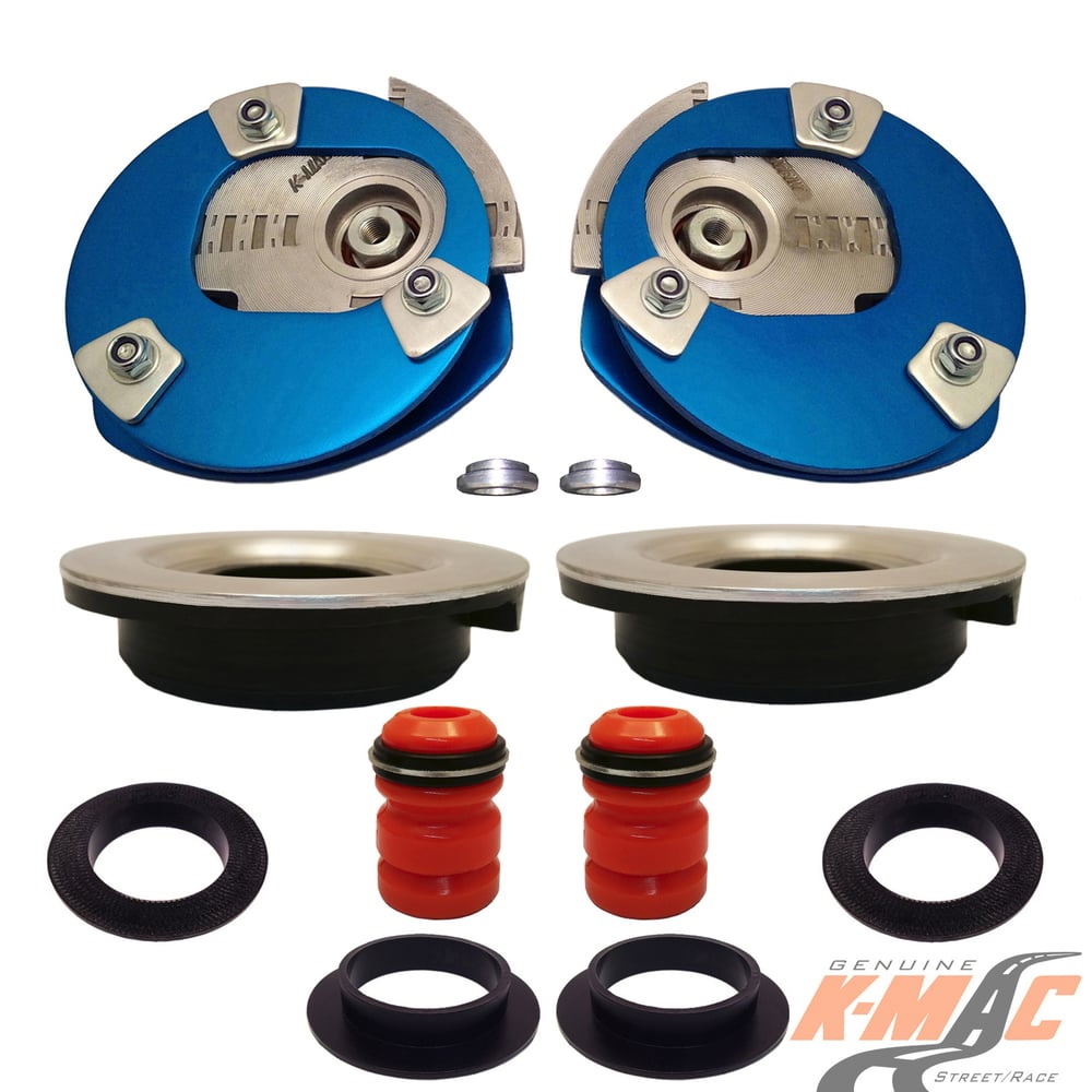 FEATURES / WHAT YOU WOULD EXPECT FROM KMAC : Change settings just in the time taken to loosen the top mount nuts (and with strut brace fitted). No disassembly or strut removal. Unique Patented design, QUICKEST / BIGGEST adjustment system. ALSO WITH KMAC IT’S NOT ONLY CAMBER – SEPARATE “CASTER” INCLUDED AS WELL.